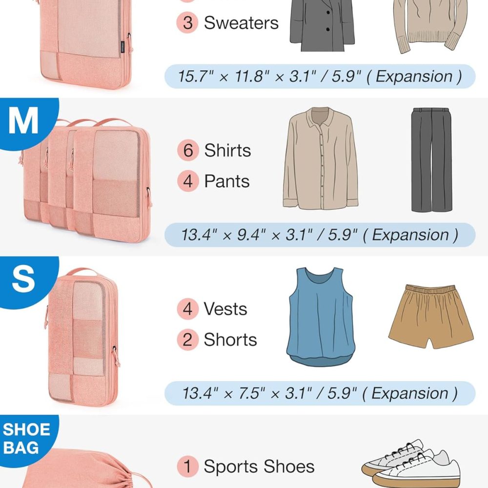 Product on saleBAGSMART Compression Packing Cubes, 6 Set for Carry-on Suitcases, Travel Cubes & Suitcase Organizer With Shoe BagOriginal price was: €39.99.€23.59Current price is: €23.59.