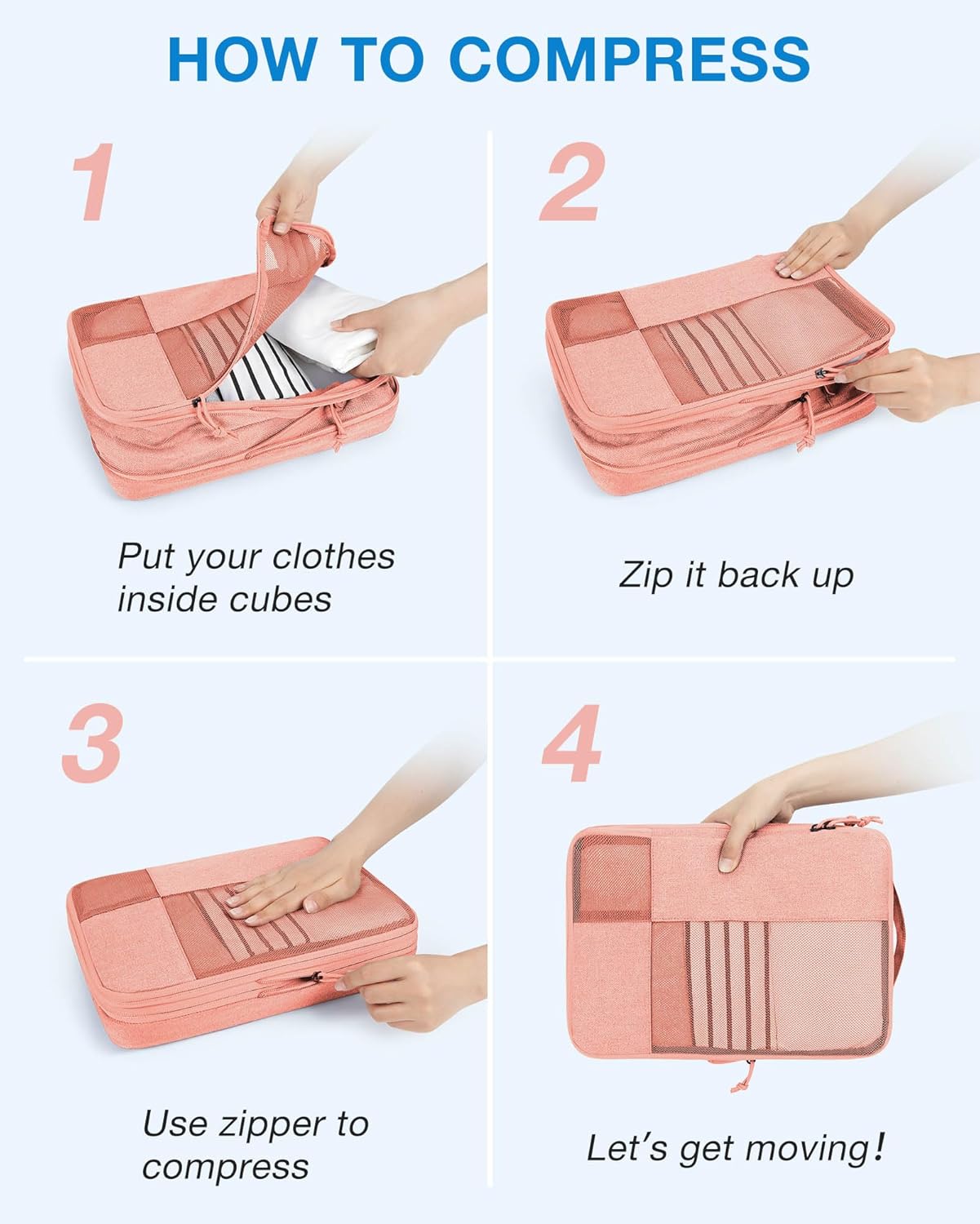 Say goodbye to messy suitcases and hello to stress-free travel with the BAGSMART Compression Packing Cubes. Pack smarter, travel lighter, and enjoy the peace of mind that comes with staying organized on the go.